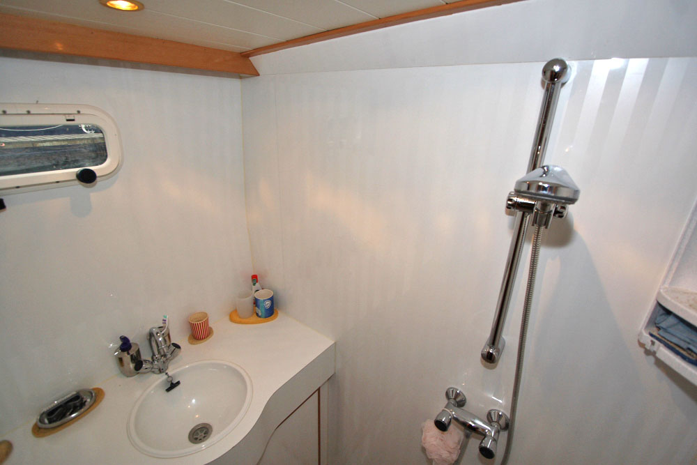 Bugkabine: Doppelbett, WC, Waschbecken