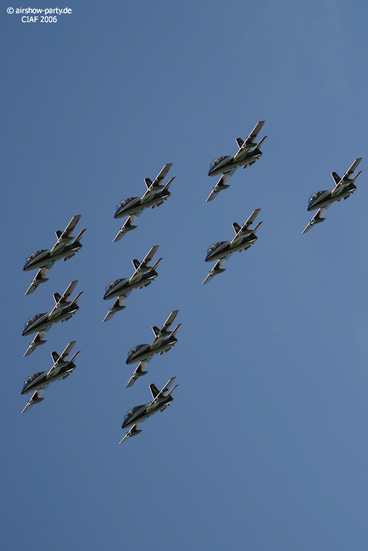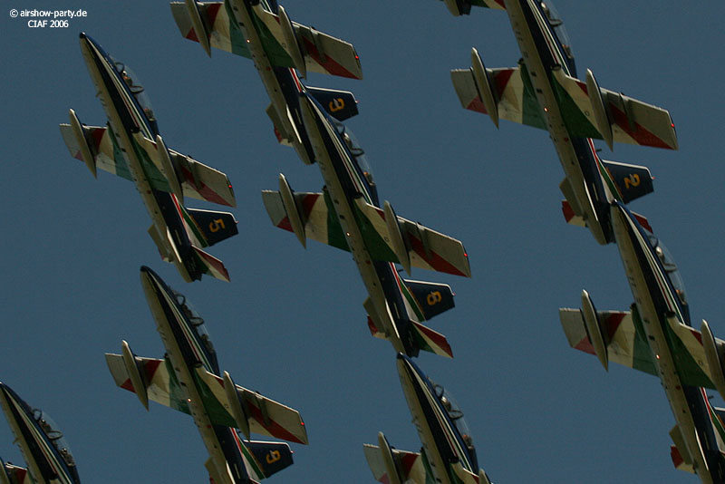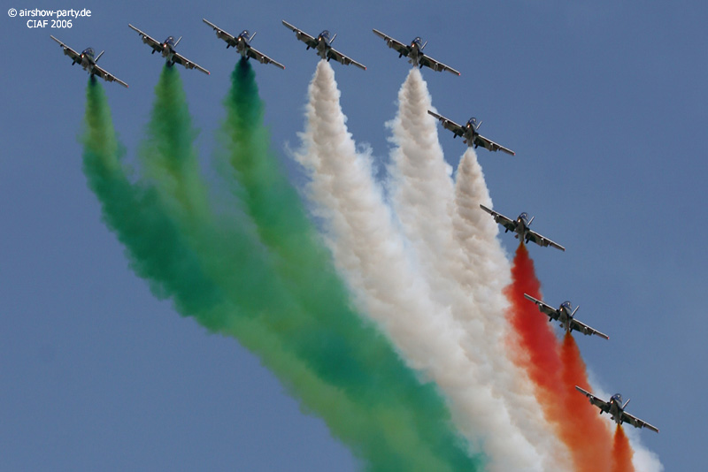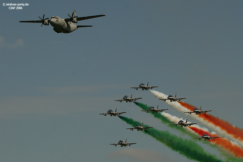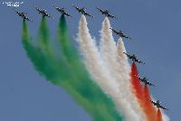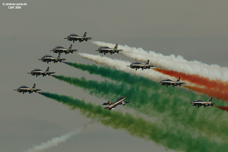 Anschließend verfolgte das airshow-party.de Team erstmalig geschlossen den Auftritt der Pattuglia Acrobatica Nazionale, den Frecce Tricolori. Die 10 MB.339A/PAN sind optisch und akustisch ein Hochgenuss, das Programm ist absolute Weltklasse! Ein seltenes Ereignis war der abschließende, gemeinsame Überflug mit der Spartan.