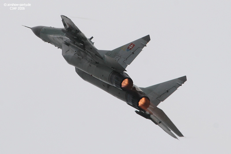 Nach einem leckeren und sehr günstigem (8 Euro p.P. incl. Getränke) Abendessen ging es zum Nächtigen in das alte, aber saubere Hotel Global. Den zweiten Tag verbrachten wir auf der Zuschauerseite, um uns das static-display anzuschauen. Zu unserem Bedauern war die getigerte MiG 29 UB nicht vor Ort. Das flying glich dem des ersten Tages bis auf einige Ausnahmen. Das Wetter war etwas schlechter.