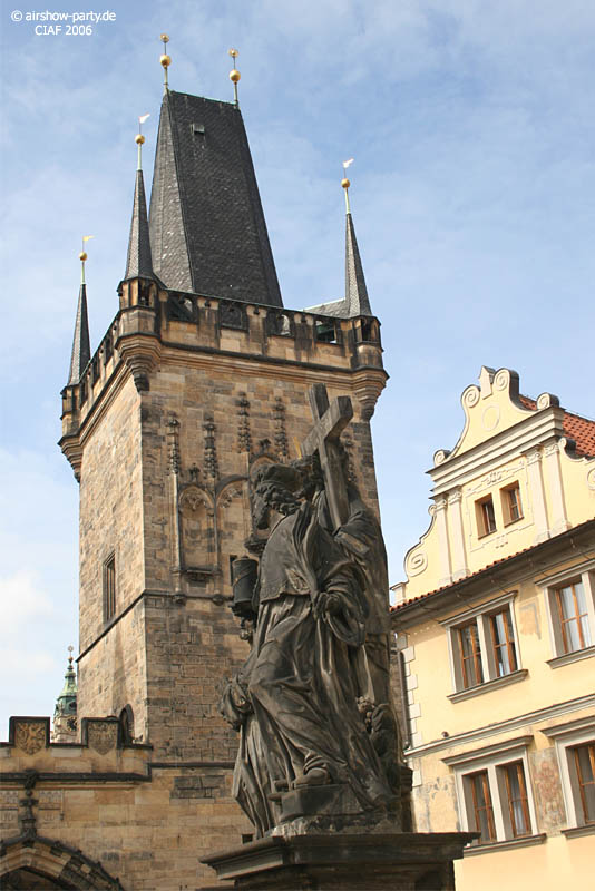 Deutsch: „Ich will einen Krtek!!!!!“ Mit diesem unauffälligen Wink des Zaunpfahls ließ Nicole uns wissen, welches Ziel unsere letzte große airshow-party.de Tour in 2006 haben sollte: Das Czech International Airfest in Brno! Da wir alle in unserer kindlichen Vergangenheit große Fans der Sendung mit der Maus waren, sahen wir uns nicht im Stande, ihr diesen Wunsch auszuschlagen. Mit Bianca und Stephan nahmen zwei weitere Freunde des kleinen Nagers an dem Ausflug ins schöne Tschechien teil. Los ging es in diesem Jahr bereits am ganz frühen Freitagmorgen. Unser Weg führte uns über Magdeburg, Leipzig, Dresden und Teplice zunächst nach Prag, war es doch beim dritten Besuch der tschechischen Republik Zeit, etwas mehr zu sehen als den airport und diverse Hotels in Brno. Nachdem wir das Hotel gefunden und das erste Bier getrunken hatten, ging es per U-Bahn in das Zentrum der Goldenen Stadt. Nach einem halbwegs den Ansprüchen des verwöhnten Spotter-Magens genügendem Frühstücksbuffet, war sightseeing angesagt. Prag in wenigen Stunden war ein voller Erfolg, mehr Kultur wäre schwierig zu verkraften gewesen! Auf der berühmtem Karlsbrücke gab es dann noch ein besonderes Ereignis: Franzi und Fredi haben sich verlobt, so dass in wenigen Monaten eine Hochzeit biblischen Ausmaßes ansteht! Zu hoffen ist, dass Fred wenigsten beim Ja-Wort auf seine Blue-Angels-Mütze verzichten kann. Ohnehin ist die Liebe der beiden Turteltäubchen eng mit P.ornos Spotterkarriere verbunden: Lieben gelernt einen Tag vor der Air 04 in Payerne! Zusammengezogen einen Tag vorm CIAF 05! Verlobt einen Tag vorm CIAF 06! Geheiratet einen Tag vorm CIAF 07? Wir werden sicher von diesem gesellschaftlichen Höhepunkt berichten! Unser eigentliches Ziel, Maulwurf finden und in Besitz bringen, scheiterte auf der ersten Station unserer Reise allerdings kläglich. Doch bevor wir uns weiter auf sielmannschen Pfaden bewegten, mussten noch 2 Tage Airshow hinter uns gebracht werden! Den ersten Tag verfolgten wir von der Gegenseite des eigentlichen Zuschauerbereiches, um die Sonne im Rücken zu haben. Fred und Franzis Einsatz ist es zu verdanken, dass wir in den Genuss einer Kiste Bier kamen. Die beiden schleppten das Getränk der Begierde über 1,5 km und dieses in praller Sonne! Hut ab! Wäre es nach dem Doktor gegangen, hätten wir aus Zeitmangel ganz auf den Gerstensaft verzichten sollen! Unfassbar! Eröffnet wurde die Show mit einem Überflug tschechischen Fluggerätes! Mi-17; Mi-24/35, L-39 Albatros, L-159 A und JAS-39C in mehrfacher Ausführung gibt es in unseren Breitengraden sicher nicht zu sehen.