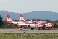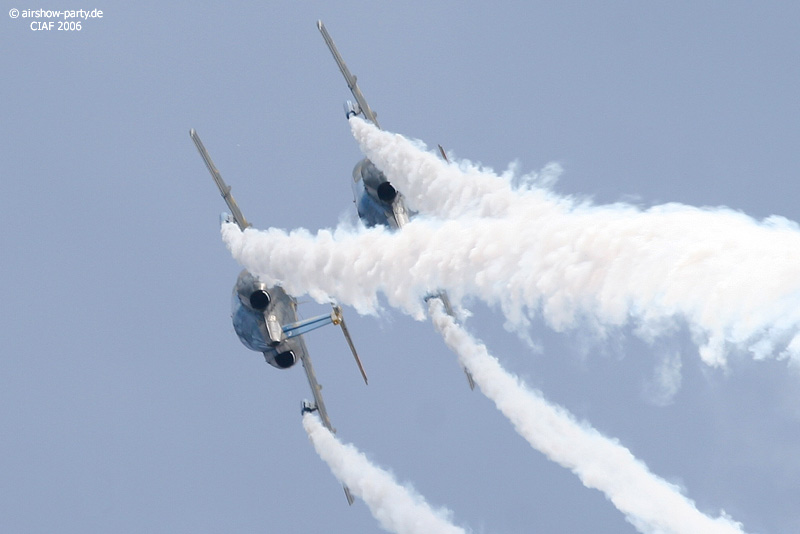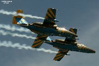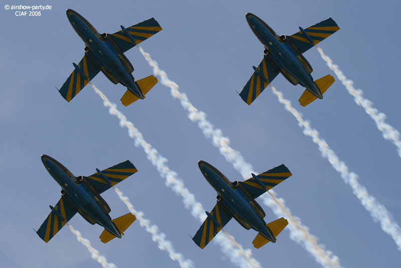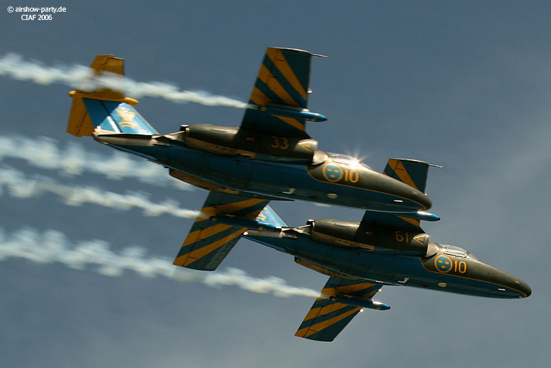Das Gripen Display hatte mit dem vom letzen Jahr nichts mehr gemein. Eine mit Schmackes geflogene Darbietung aller ersten Ranges. Nach der L-159A performte das schwedische Team 60 auf ihren Saab105 SK 60 einen der seltenen Gastauftritte im Ausland. Ein sehr schönes Display mit außergewöhnlich lackierten Flugzeugen. Anschließend folgte mit dem Verbandsflug von drei G-2A Galeb der jugoslawischen Luftwaffe ein Höhepunkt, den wir in Zukunft wahrscheinlich nicht noch einmal geboten bekommen.