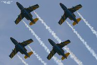 Das Ende der Show bildete das polnische Team Iskry auf ihren nur noch vier TS-11 Iskra. Ein selten gesehenes Team am Airshowhimmel, welches in den letzen Jahren von acht auf vier Flugzeuge reduziert wurde. Leider fand das Display sehr weit von den Zuschauern entfernt statt.