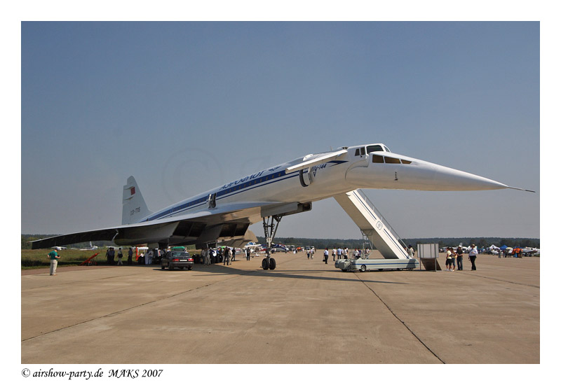 Ein weiterer Leckerbissen war die M-55 der Geophysica, welche u.a. zur Landvermessung und Kartographie eingesetzt wird. Auf der zivilen Seite glänzten, Tu-204 von Cubana und die neue Präsidentenmaschine Russlands. Mit der IL-96-400T in Farben von Atlant-Sojus gab es sogar eine Weltpremiere. Absolutes und unerwartetes highlight jedoch war die Tupolew 144. Ein wunderschönes, perfekt erhaltenes Flugzeug, noch mit alter СССР Kennung.