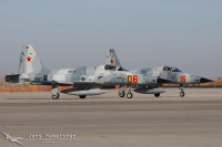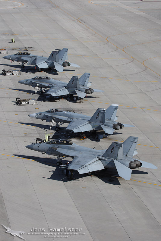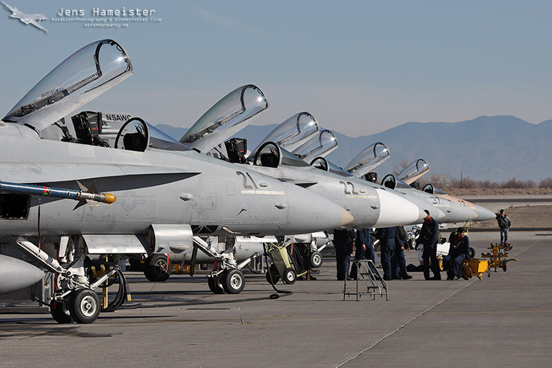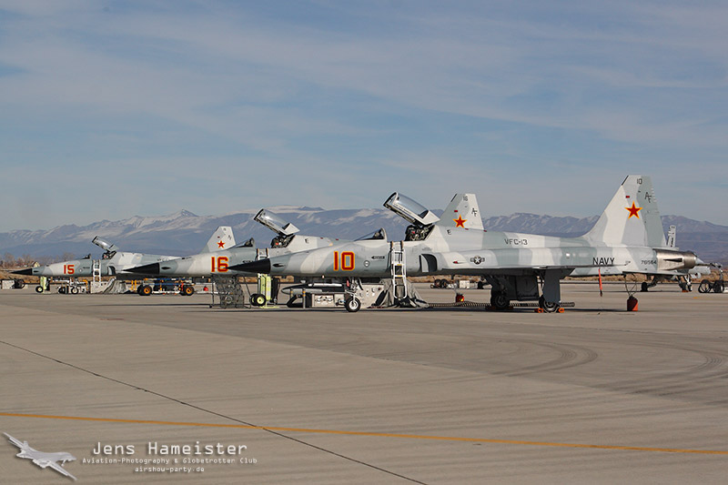 Seit nunmehr 40 Jahren verpasst die Navy Fighter Weapon School die Piloten der US-Navy und der Marines den letzten Schliff. Seit der Zusammenführung mit dem Naval Strike and Air Warfare Center auf der NAS Fallon auch mit hochmodernem Fluggerät. Wir haben uns umgesehen. Topgun ist eines der bekanntesten militärischen Trainingsprogramme und sicherlich nicht zuletzt durch den gleichnamigen Film aus den achtziger Jahren zu weltweiter Berühmtheit gelangt. Gegründet wurde die Navy Fighter Weapon School, so lautet der offizielle Name, im Jahre 1969 und war zunächst auf der MAS Miramar in Kalifornien beheimatet, bevor sie 1996 nach Fallon verlegt wurde. Heute ist das VFC-13 zusammen mit dem NSAWC (Naval Strike and Air Warfare Center) für die Fortgeschrittenenausbildung der Navy- und Marines Flugzeugbesatzungen zuständig. Äußerst anspruchsvoll und komplex sind die 4-wöchigen Kurse, zu denen jährlich 6-7 Mal verschiedenen Einheiten mit je 12 F/A-18, sowie dem gesamten Bodenpersonal in Fallon einschweben. Dabei beruht die Aufgabe der beheimateten Einheiten mit ihren F-5 II (VFC-13), F-16 und F/A-18 (NSAWC) regelmäßig in der Feinddarstellung. Die Szenarien sind dabei recht unterschiedlich. Zum einen finden auf und über dem 340 Quadratkilometer großen Fallon Range Trainings Complex Verbundübungen statt. Dabei wird in realistischem Terrain das dynamische Zusammenwirken von Luft- und Bodentruppen trainiert. Dafür unterhält das NSAWC auch Drehflügler vom Typ SH-60, HH-60 und MH-60. Ein weiterer Schwerpunkt liegt im Air to Air und Air to Ground Überlegenheitstraining, in dessen Verlauf die einzelnen Teilnehmer auch individuell geschult werden. Das SAR-Team der NAS Fallon besitz als einzige Einheit in der NAVY noch Bell HH-1N. Diese werden im April 2009 ersetzt. Des Weiteren erhielt das NSAWC Ende 2008 eine eigene E-2C. Somit ist man in Fallon nicht auf Leihgaben aus anderen Staffeln angewiesen. Um weiterhin auf dem neuesten Stand zu sein, erhielt Topgun Ende letzten Jahres die ersten von sieben Super Hornets, der modernsten Ausbaustufe der F/A-18. Somit dürfte die hochwertige Ausbildung auf der NAS Fallon für die nächsten Jahre gesichert sein, auch ohne Tom Cruise.