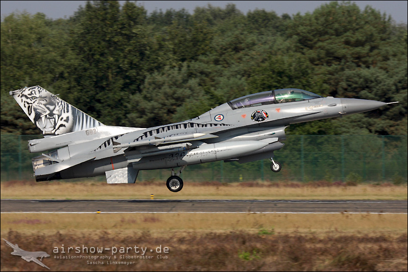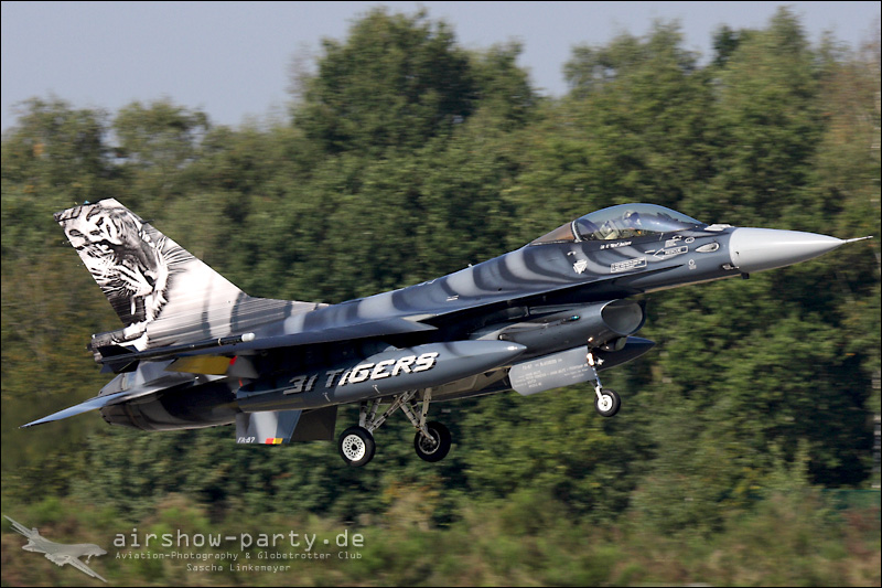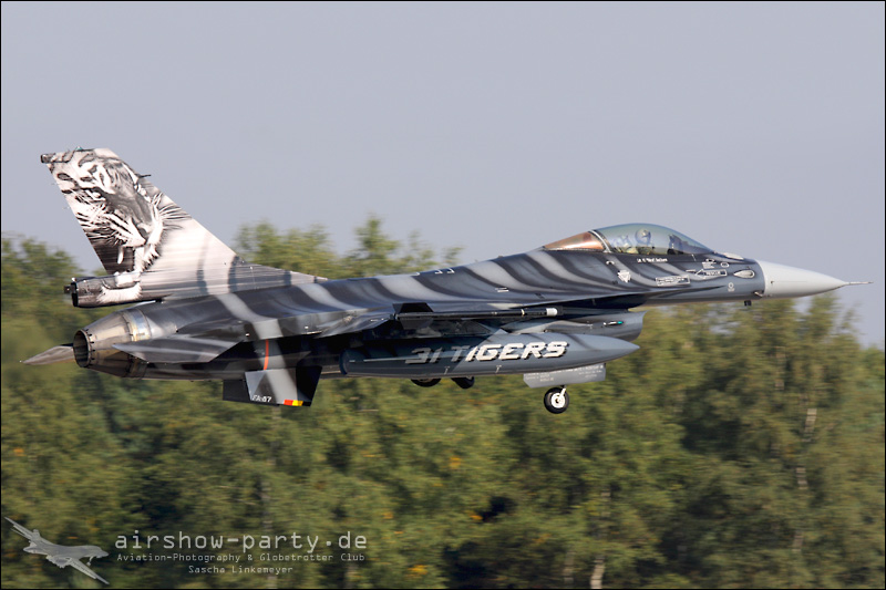 English: The tiger (Panthera Tigris) is a big cat widespread in Asia. These cats vanished from large parts of its former range and several subspecies are already extinct. In 2009 the NATO-Tigermeet took place at the Belgian air base in Kleine Brogel. The event beat our ambitious expectations. We were only for a few minutes on the base when the air traffic picked up pace with some Mirage 2000. However, they were only the aperitif of an unbelievable day. Even the gaps between both major program points were very tastefully arranged. In addition to a base attack, the Belgian F-16 demo, it was the participants of Sanicole Airshow who forced us to think about to walk to the toilet very well. In 2010 the tiger safari will be in the Dutch Volkel. In our affinity for big cats we will be there for sure… Conclusion: All around a successful event.