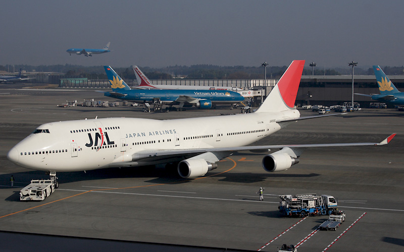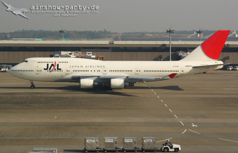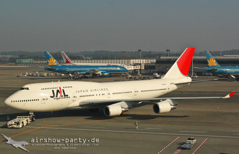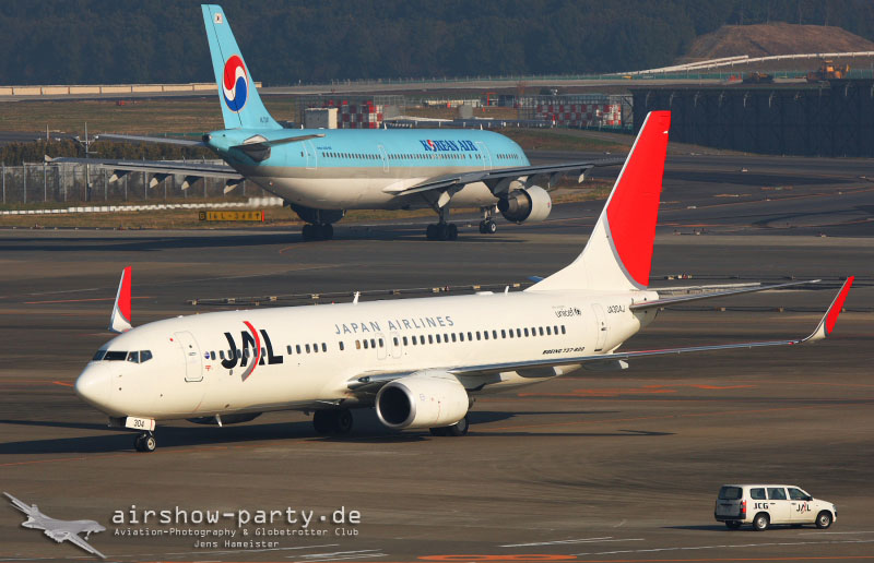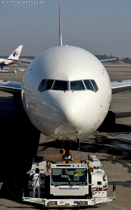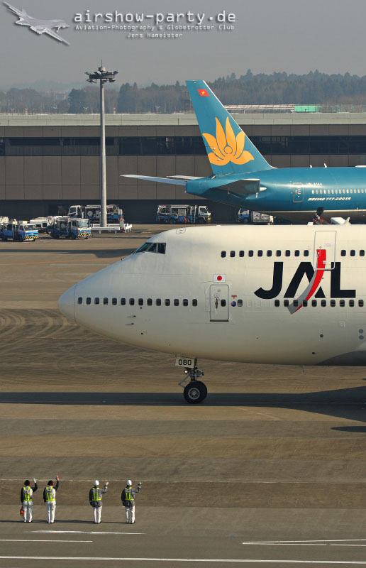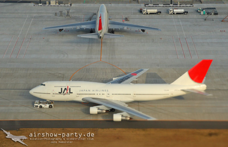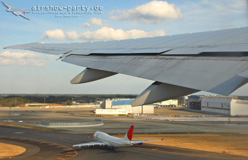 The possibility to take pictures at Narita isn’t satisfying. From all different observation decks you can only overview a small part of the airport; taxiing airplanes are very far away and disappear behind other buildings quickly. Fortunately, the one or other tidbit sweetened our day. We only saw the SIA A 380 once on the day of our arrival but the giant took the trouble to glide in directly in front of our hotel room. What an extremely tasteful wake-up call!